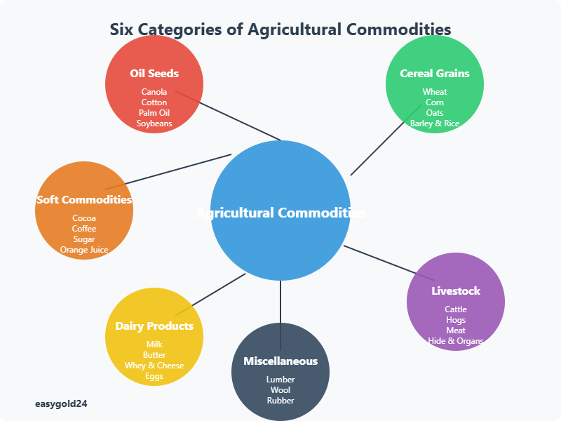 Agricultural commodities fall into six different categories that serve unique market needs: