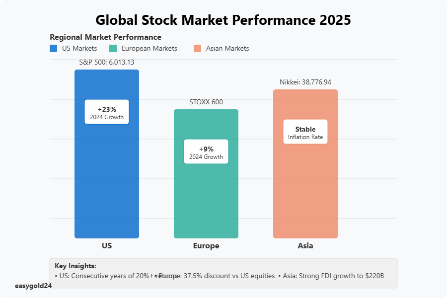 European markets present a more nuanced picture. The STOXX 600 index of European and UK companies is projected to return approximately 9% for the year. During the first six weeks of 2025, European stocks have performed better against Wall Street than at any time in the past decade. European equities currently trade at 14 times expected earnings, representing a substantial 37.5% discount compared to their US counterparts.
