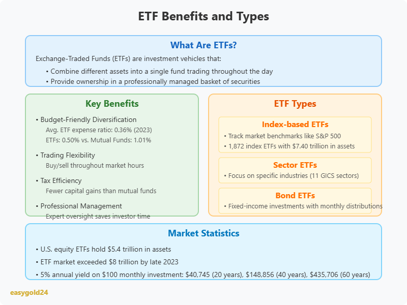 ETFs serve as an excellent first step toward intelligent investing. These investment vehicles combine different assets into a single fund that trades on exchanges throughout the day, similar to individual stocks.
