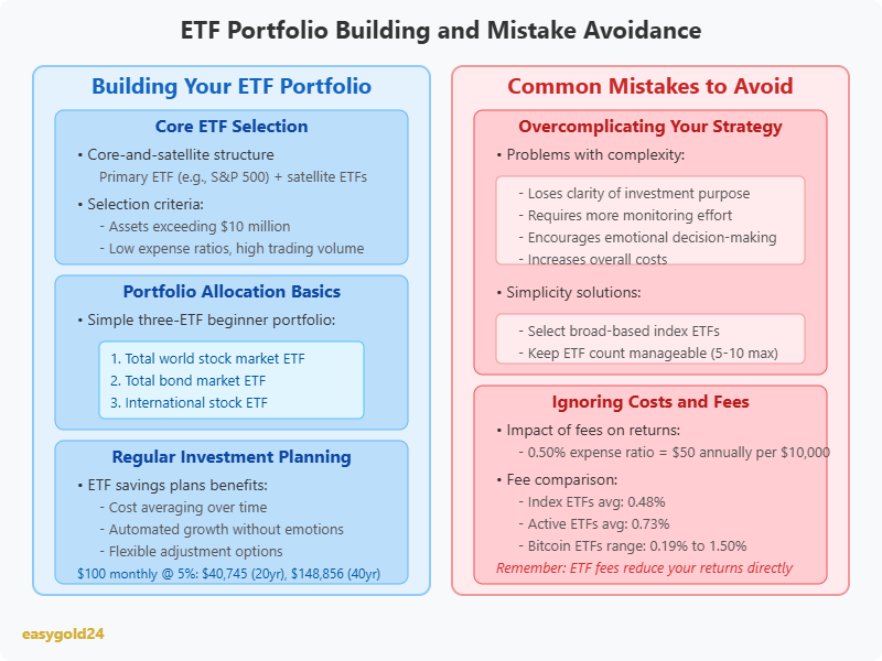 Remember that ETF investing success stems from patience and discipline. Avoid frequent trading or emotional decisions based on short-term market movements. Focus on maintaining your chosen asset allocation and regular investment schedule, allowing compound interest to work effectively over time.