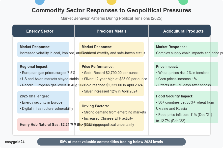 Commodities respond differently to geopolitical pressures, creating unique market dynamics across various sectors. Market participants must understand these patterns to navigate the complex 2025 market landscape effectively.