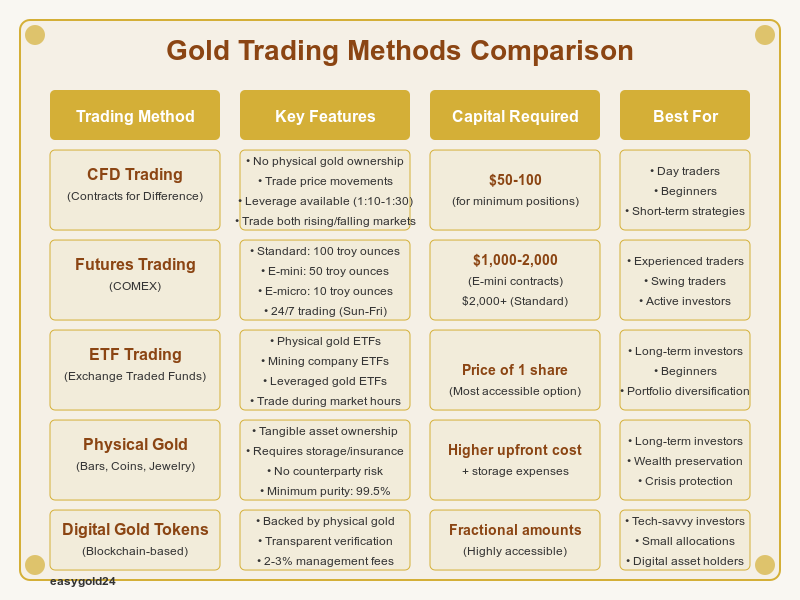 Gold trading has evolved significantly beyond simply purchasing physical gold. The precious metal stands out as a versatile financial asset that provides traders with multiple options based on their objectives and risk tolerance.
