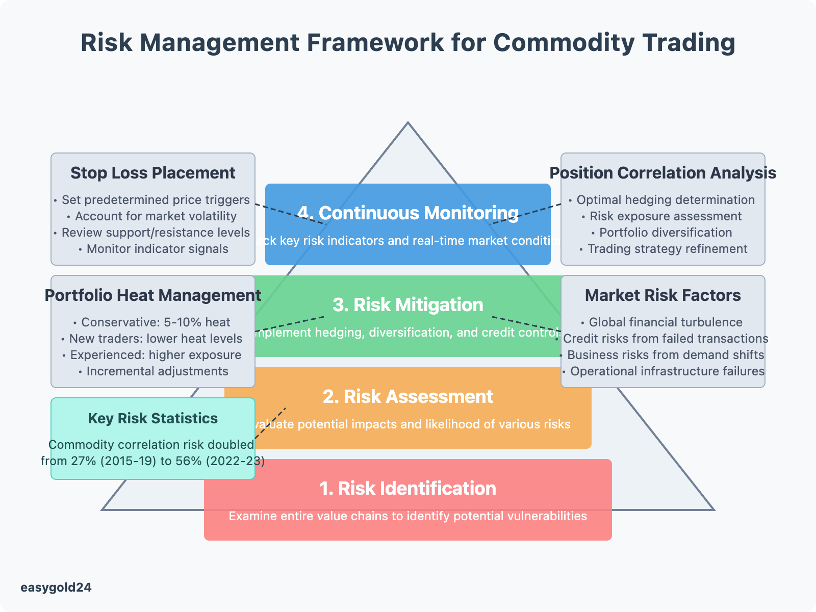 Risk management is essential for profitable commodity trading. Traders need a systematic approach to protect capital while maximizing returns. They safeguard investments against market volatility by implementing stop-loss strategies, analyzing correlations, and monitoring portfolio heat.