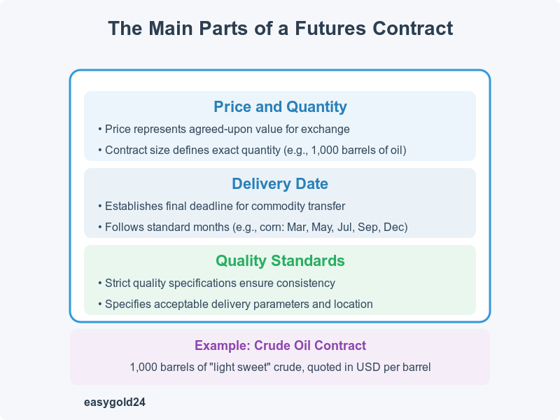 These three core elements—price and quantity, delivery date, and quality standards—create a transparent and efficient marketplace. Through these specifications, futures contracts provide effective price discovery and risk management in commodity markets of all sizes.