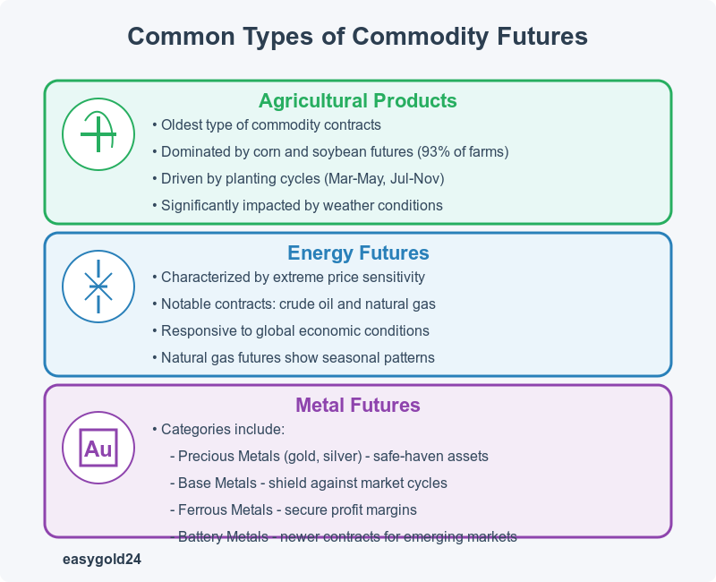 The commodity futures market encompasses three major sectors, each with its own economic purpose and trading patterns. Let’s examine these key categories that form the foundation of futures trading.