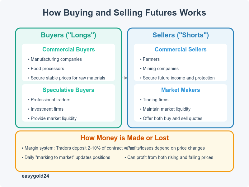 Commodity futures trading unites market participants from diverse backgrounds who fulfill unique roles in this financial ecosystem. Let’s examine how these markets operate and what drives profits and losses.